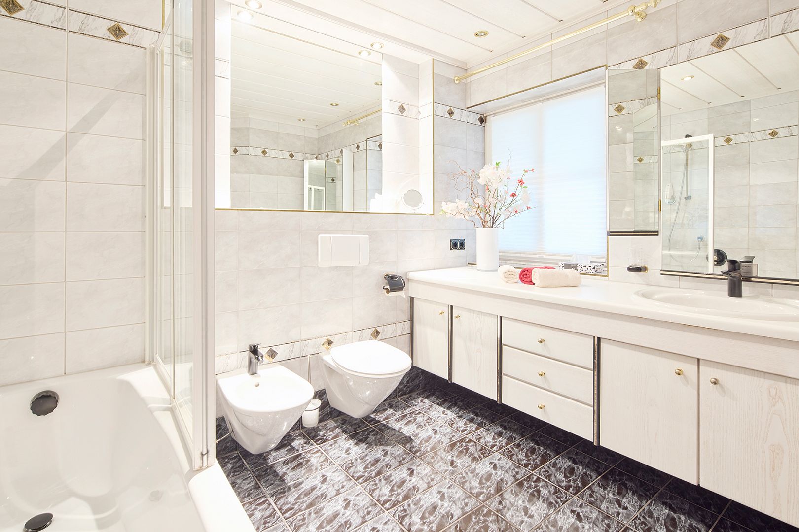 The only Triple Room in our hotel with 30 m² is located on the ground floor without a balcony. There is a separate sleeping room between main room and bathroom and is equipped with a 130 x 200 cm bed. Also the huge bathroom with bathtube, toilet and bidet guarantees you relaxing moments.
